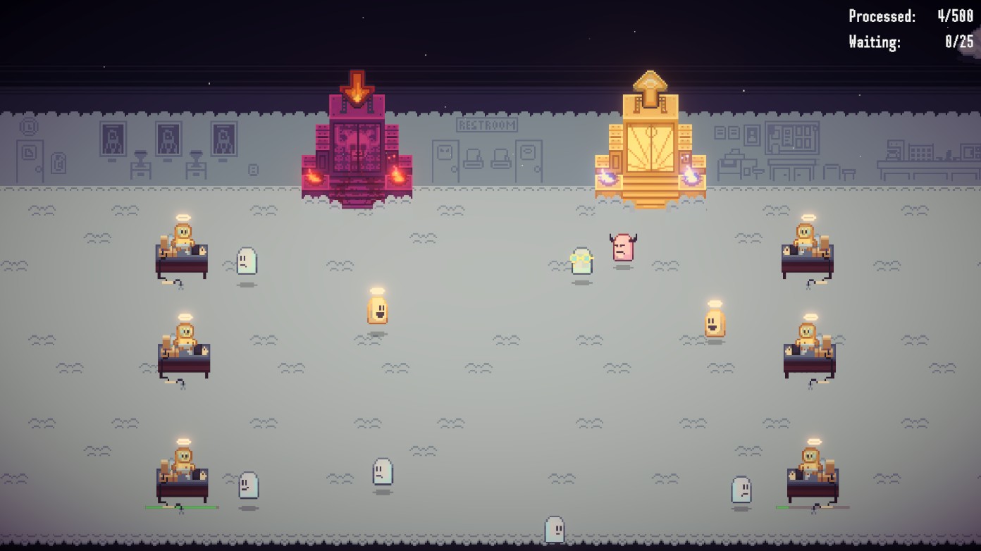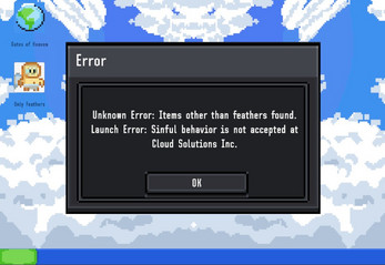 Now, in front of the Gates of Heaven, a chubby little angel inside a computer Greets you. As they ran your name in the GatesOfHeaven 1.1 Database to analyze and define your destiny, an error popped up. "Not enough data", nice, what do you do now?
